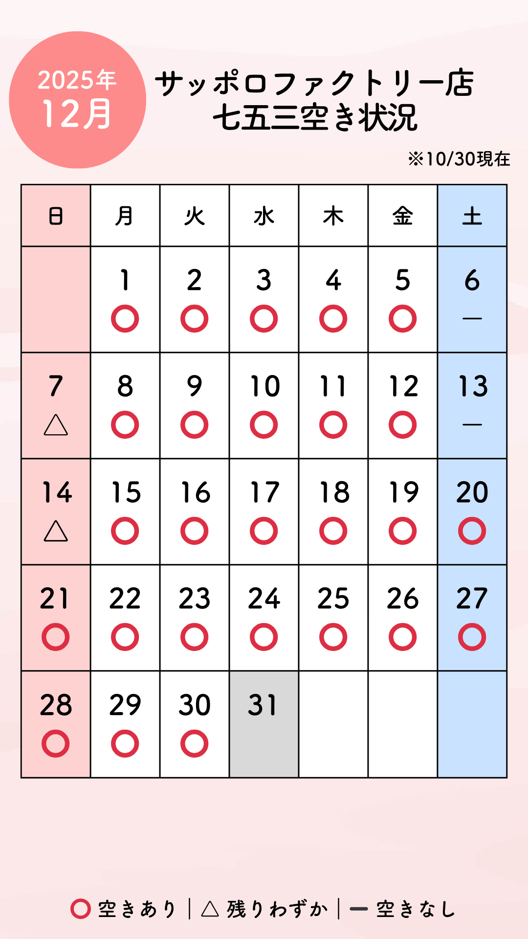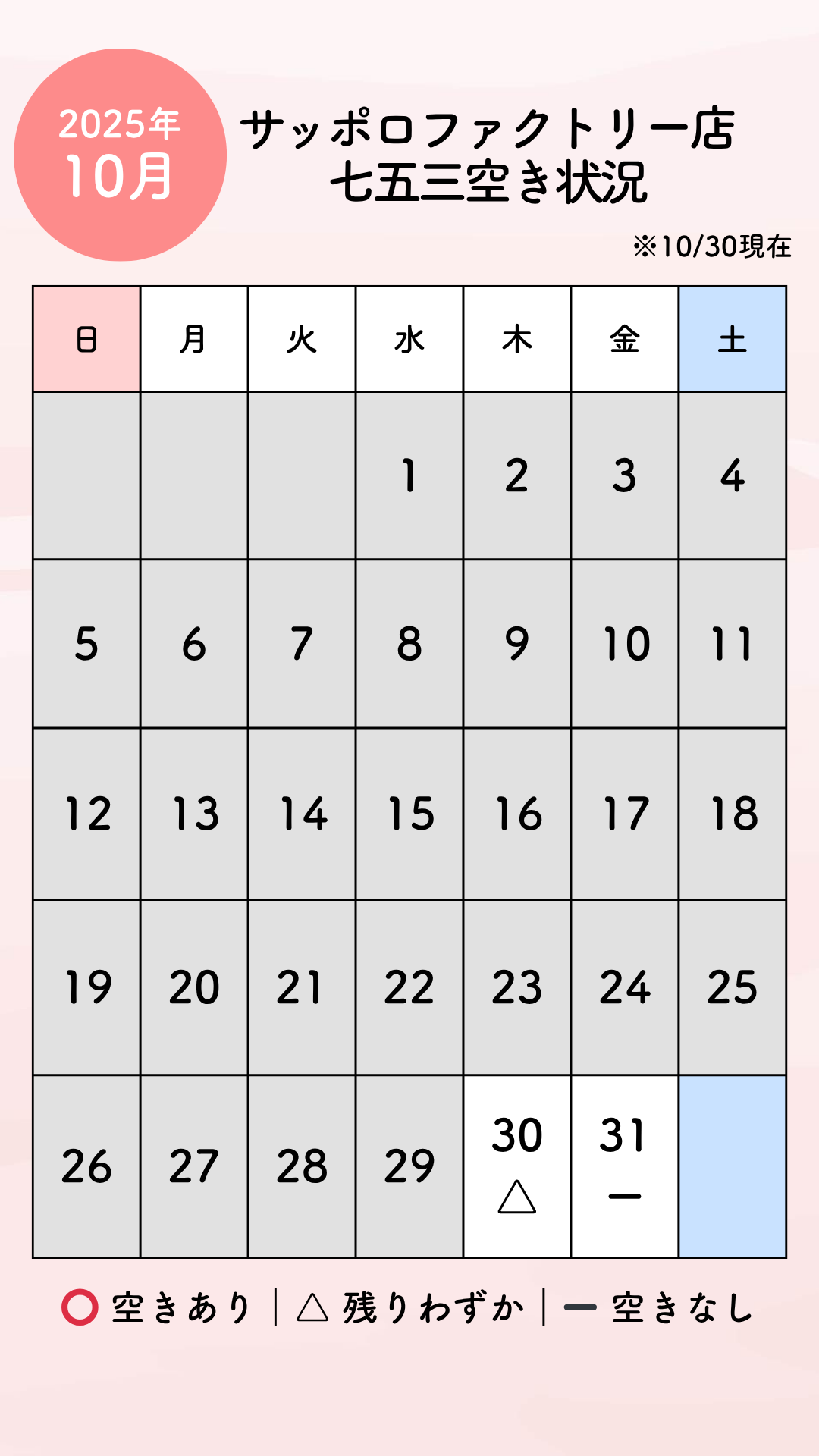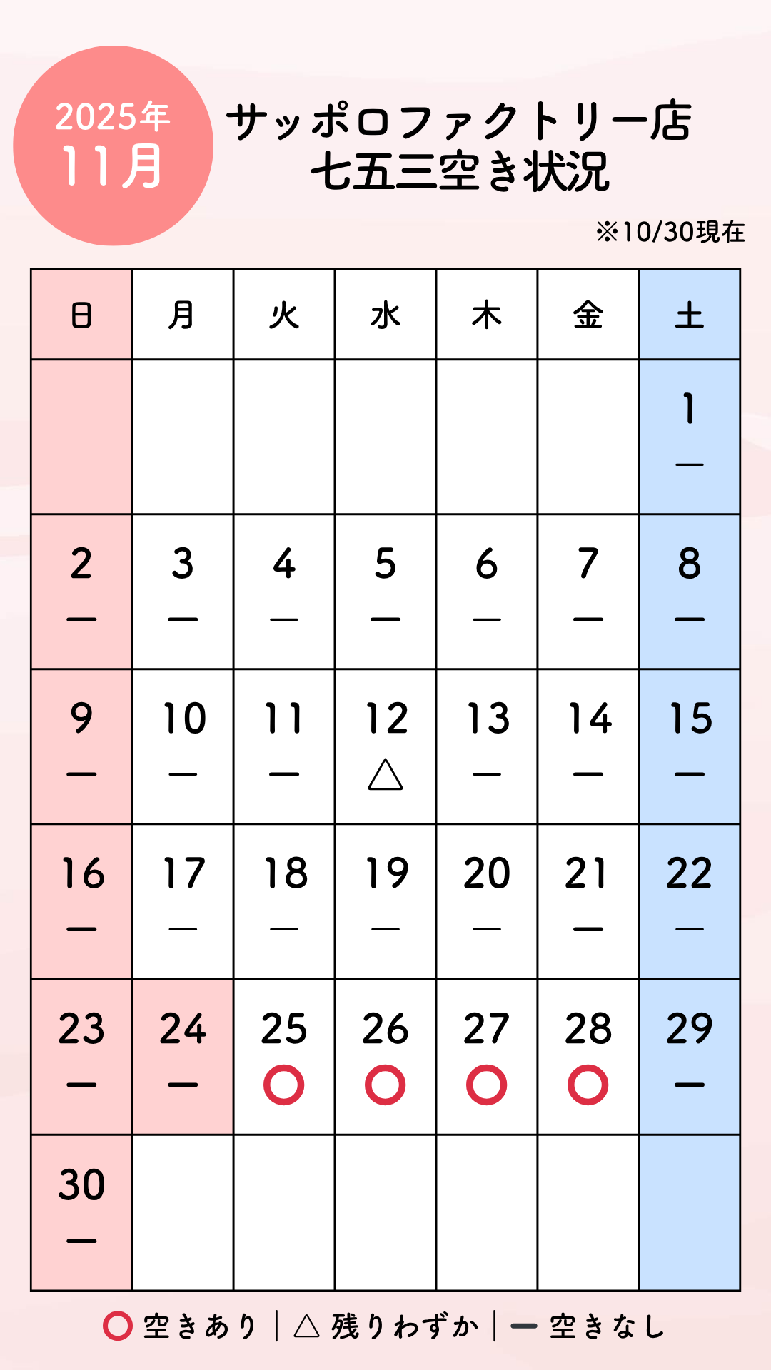【七五三】残りわずか!オンライン相談11月空き状況のお知らせ🌸【サッポロファクトリー店】
