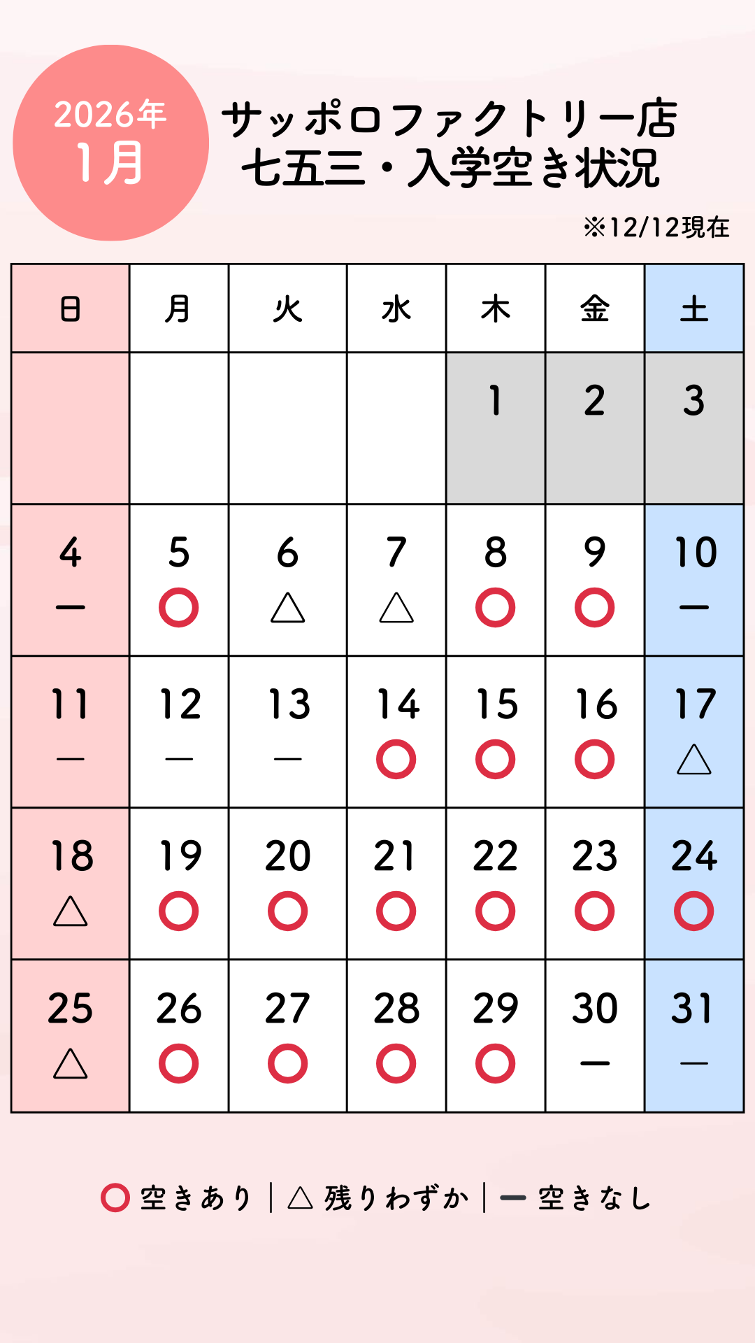 【12/12更新:12月・1月の撮影空き状況】