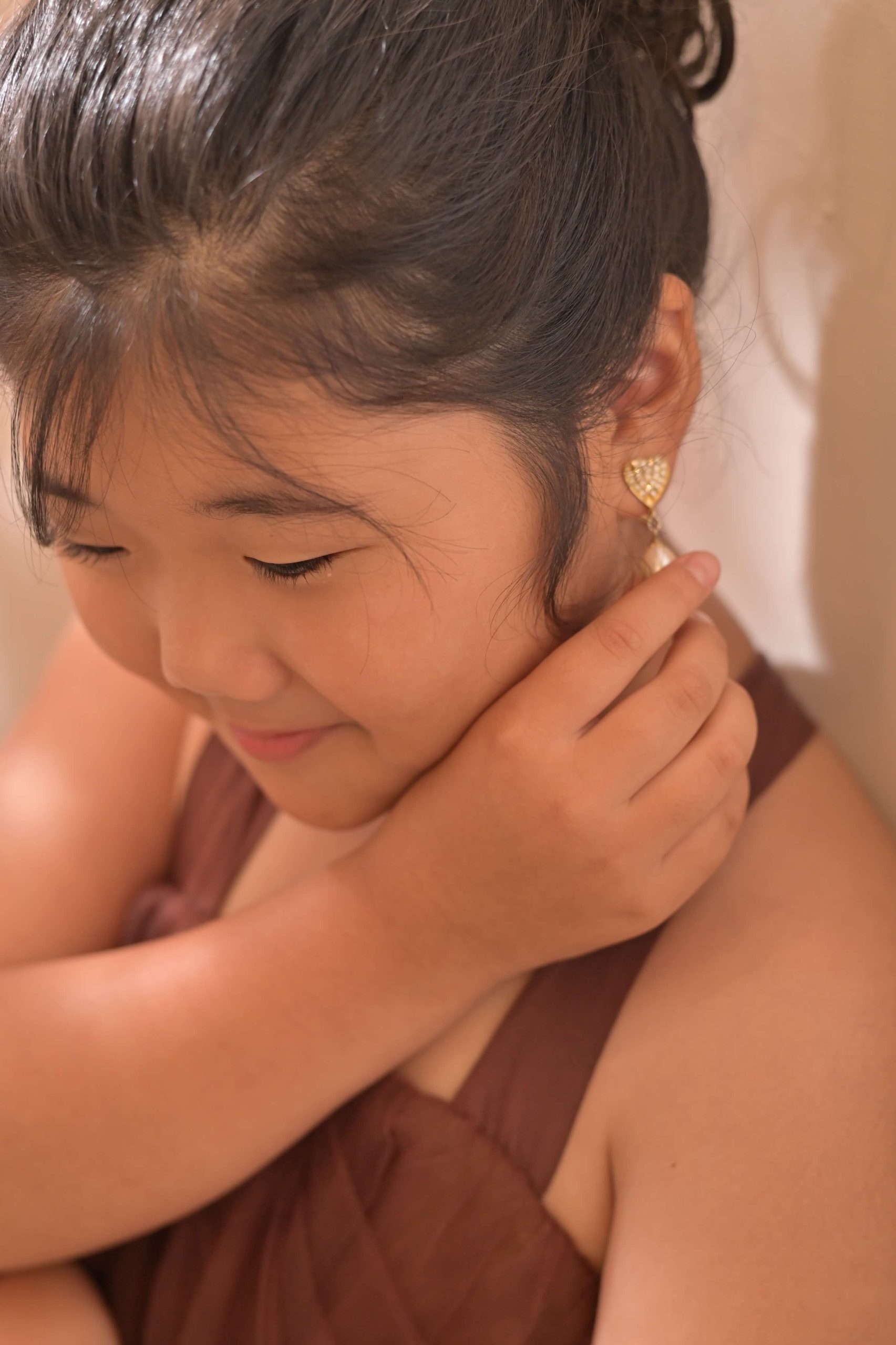 ドレスはロング丈のものが人気です。イヤリングやネックレス、ヘアアクセサリーも自由にお選びいただけます。