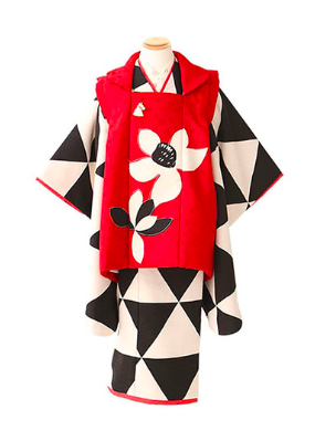 オフホワイトと黒のお着物がモダンで可愛い1着!