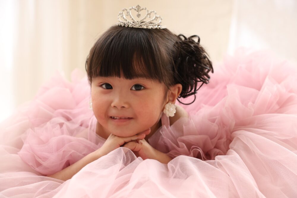 こんにちは!サッポロファクトリー店です! 本日は、とっても可愛い3歳の女の子のお写真をご紹介します♪ ふわふわのピンクのドレスに身を包んで、まるで絵本から飛び出してきたようなプリンセスに大変身! ぜひ、七五三での撮影をお考えの方は参考にしてください〜