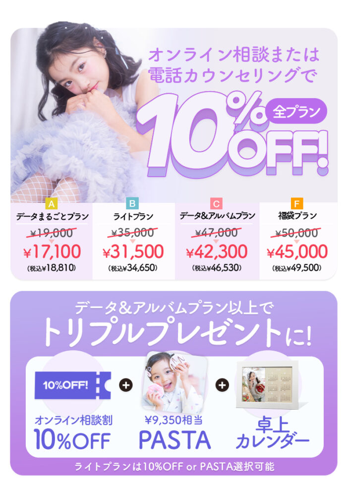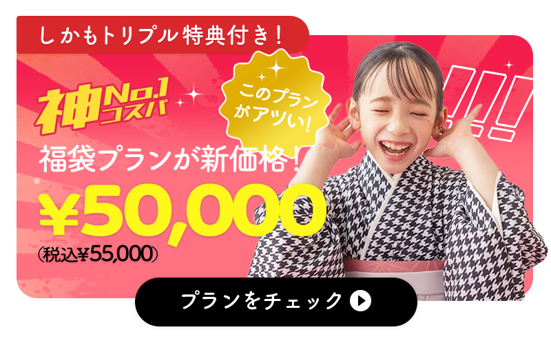 各年の成長を記録する七五三撮影は¥30,000(税込¥33,000)からご案内!