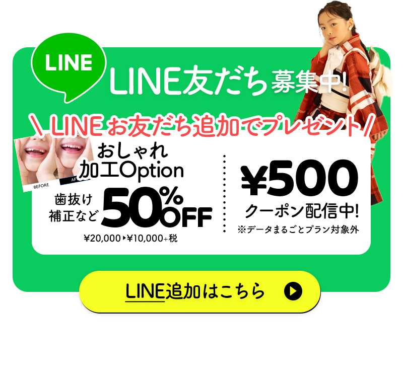 ・歯抜け補正などのおしゃれ加工オプションが50%オフ!