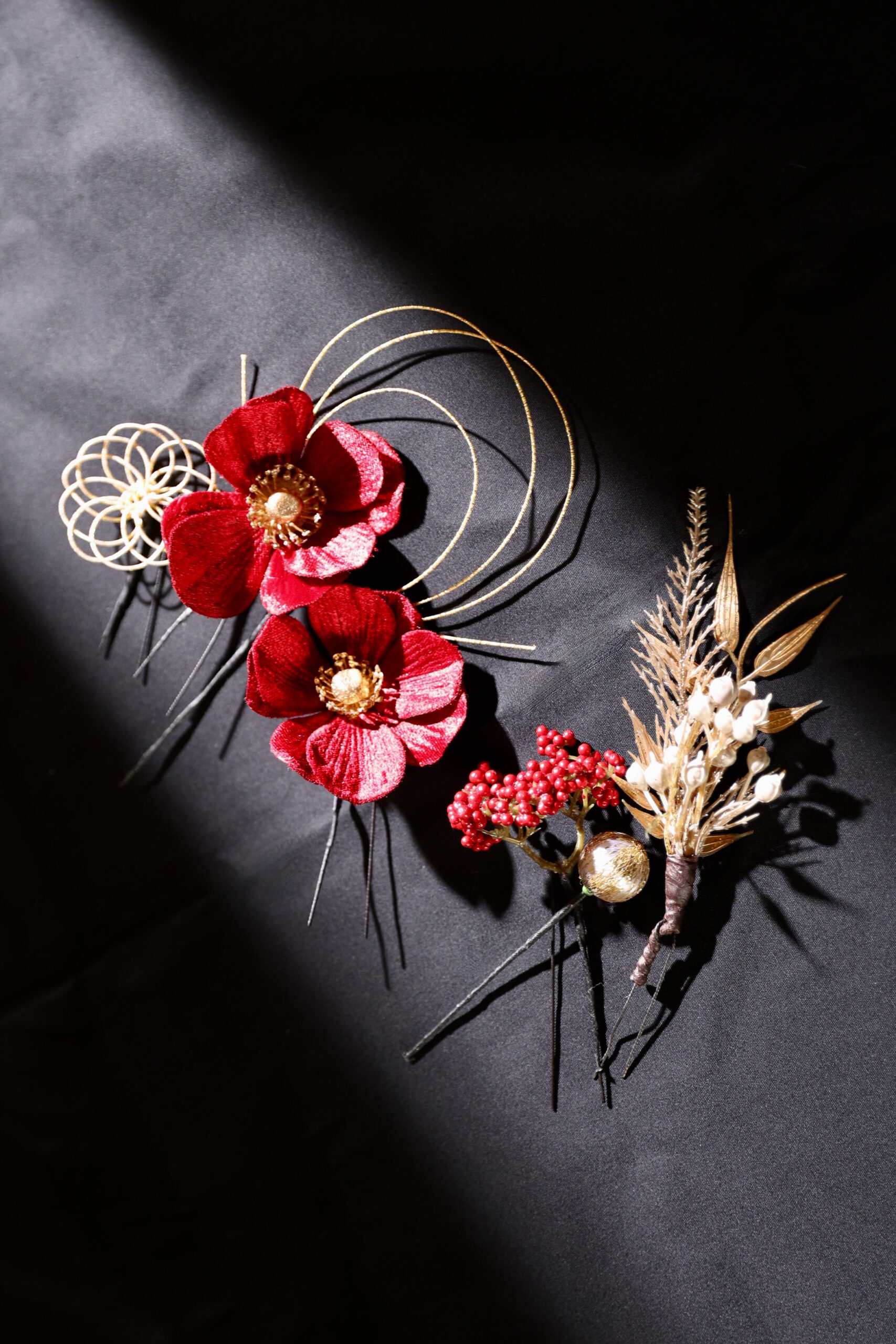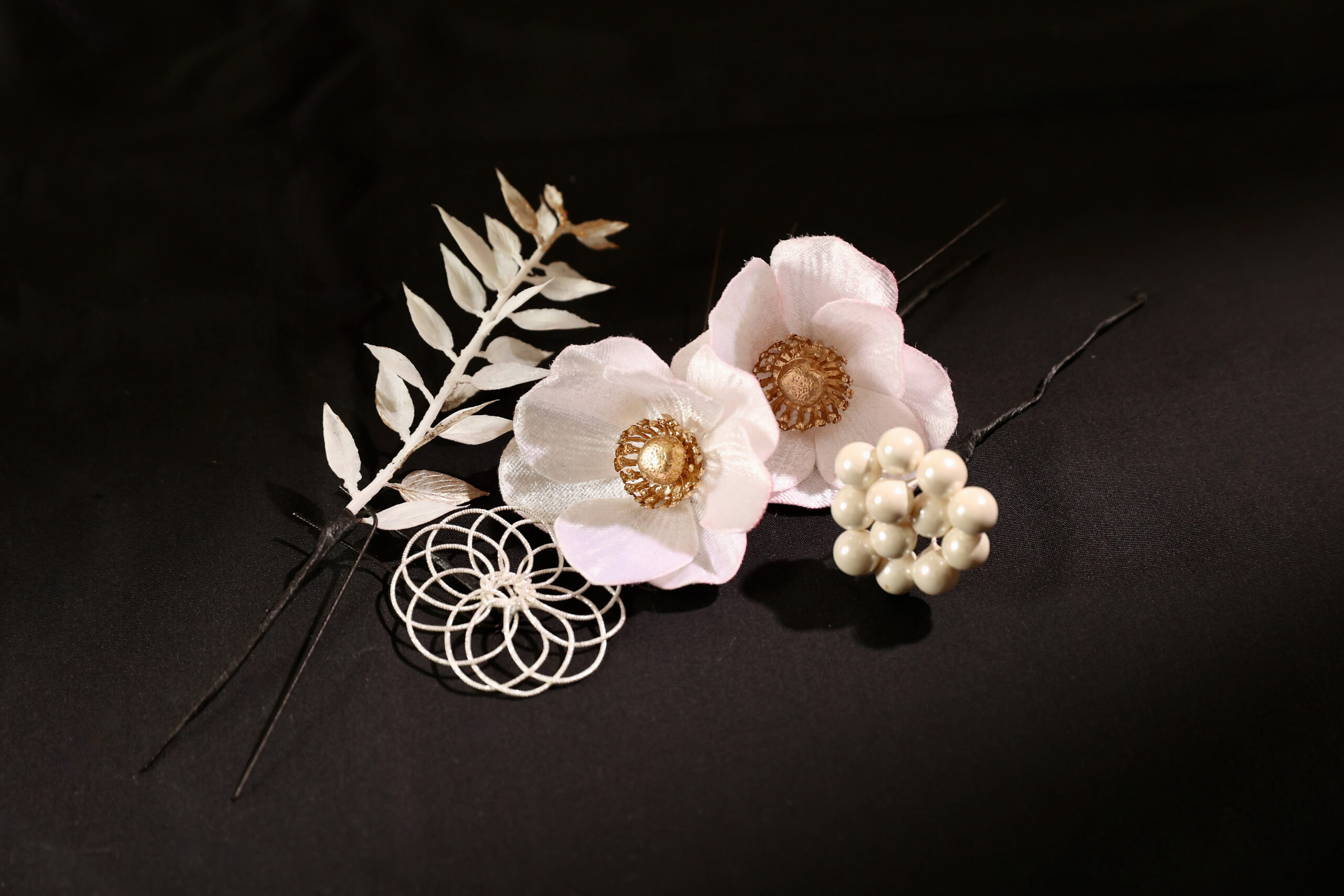 お着物を着る際にポイントでいれるだけで一気に華やかになる髪飾り。
