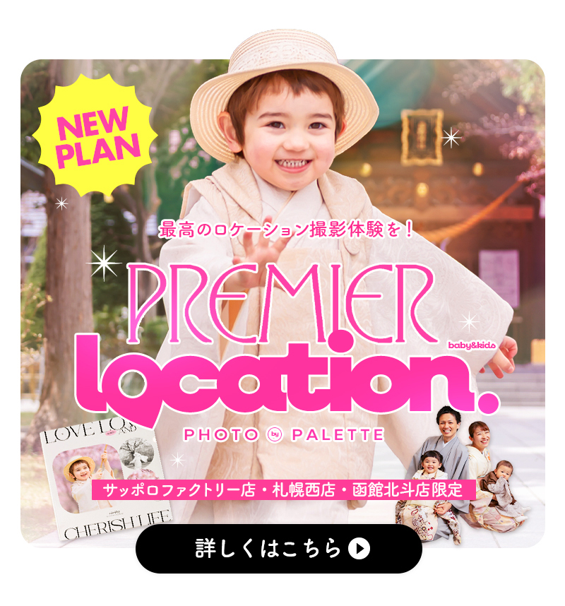 各年の成長を記録する七五三撮影は¥30,000(税込¥33,000)からご案内! こだわりのスタイリングや撮影をリーズナブルに叶えることができます。 札幌の中央区の2店舗(サッポロファクトリー、札幌大通)、さらにキッズ撮影専門店palette +plusが札幌東店、西店、西岡店の3店舗、帯広、旭川、函館に各1店舗と主要部に店舗展開。 北海道を拠点に全ての「七五三」が、史上最高の記念になるよう精一杯お手伝いをさせていただきます。 費用は抑えたいけどガマンもしたくない!そんなパパママの皆様へ。様々なプランをご用意しているので、 タキシード2着や、ドレス&和装など組み合わせも自由自在。 写真工房ぱれっとだからこそ提供できる、おしゃれで可愛い♡お衣装をご用意しております。 どんなご撮影がいいのか、どんな衣装がいいのか、どんな場所がいいのか。イメージが固まっていなくても大丈夫です!お気軽にご相談ください。 各店舗100着以上、全店舗合わせると500着以上の衣装の中から運命の1着に出会える! ご試着は全て無料です。 衣装は全てwebに掲載中!目星をつけて、ぜひご来店して試着してみるのをお勧めしております。 ①普段使うアプリで!LINE登録 ②お急ぎの方は!お電話 ③24時間対応可能!web予約&オンライン相談 お好きな方法でコンタクトをお取りください★ ・どんな衣装があるか知りたい ・我が子に似合う衣装を提案してもらいたい ・お得なキャンペーンを知りたい ・どんな準備をしたら良いのか教えてほしい などなど、どんな些細なお問合せでも構いません!気になることはなんでもお気軽にお問合せください。 気になる店舗をLINE登録! 期間限定のキャンペーンの配信もあるのでお見逃しなく。 店舗スタッフがお答え致します! ◆写真工房ぱれっと サッポロファクトリー店 ◆写真工房ぱれっと 札幌大通店 ◆写真工房ぱれっと 旭川店 ◆写真工房ぱれっと 帯広店 ◆写真工房ぱれっと 函館北斗店 ◆palette +plus 西岡店 ◆palette +plus 西店 ◆palette +plus 東店 24時間対応可能!web予約フォームが便利です。 Instagramでは最新ビジュアルやキャンペーン情報を発信中です💫 フォローしてチェックしてくださいね♡ 写真工房ぱれっとは、大切なお子様の一生の思い出として、人生がより豊かになるような体験と写真をお届けできるよう、全力でお力添えさせていただきます。 初めてのご記念、ぜひ写真工房ぱれっとにお任せください。 七五三撮影は写真工房ぱれっと
