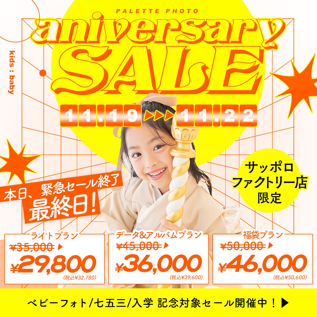 【サッポロファクトリー店限定 】3周年アニバーサリーセール開催決定!🎉本日最終日【七五三】