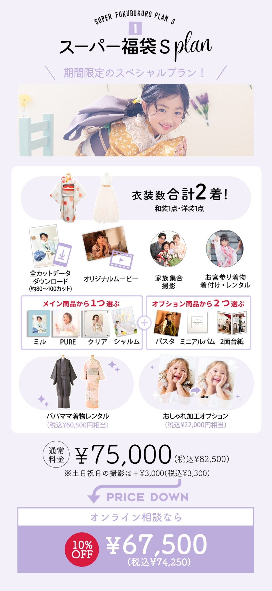 スーパー福袋プランならパパママの着物の込みの安心パック!