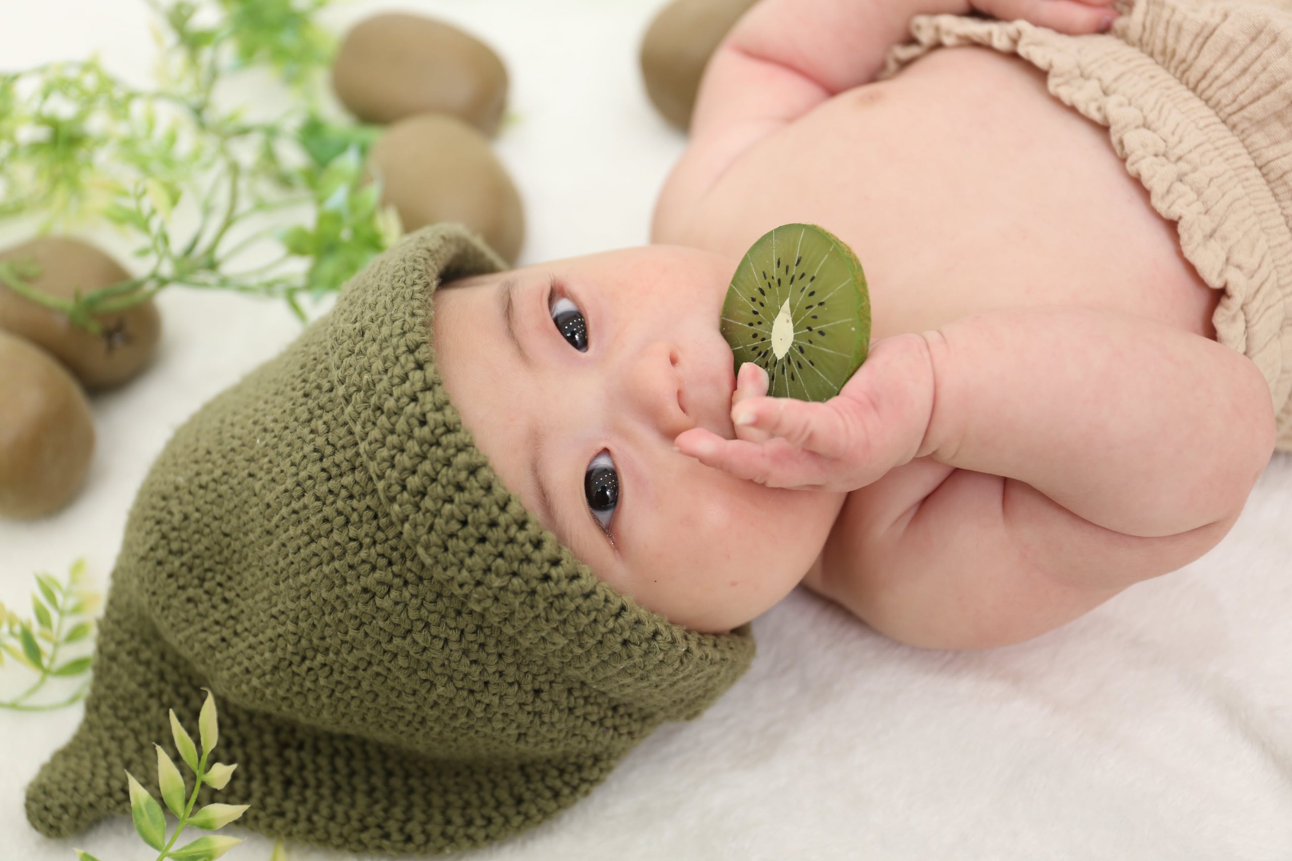 キウイをあむあむ♪ちっちゃなおててが可愛いですね!