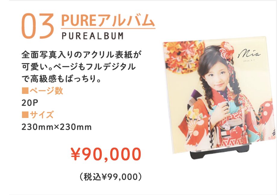 PUREアルバムは33,000円のオプションでのご案内となるため、