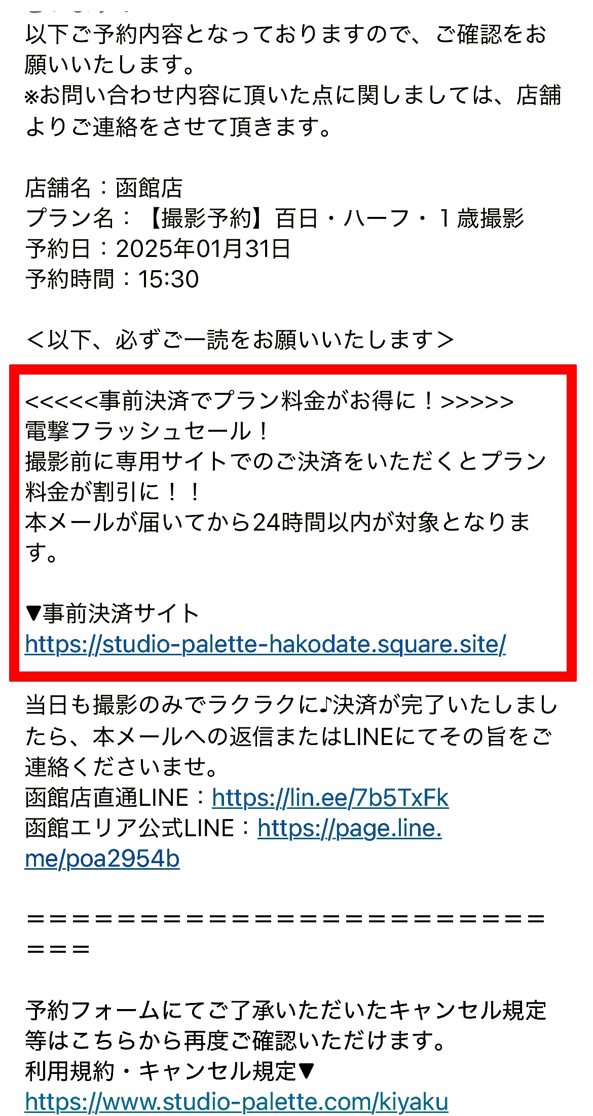 STEP2:自動返信の中に、セール専用サイトのご案内がございます。