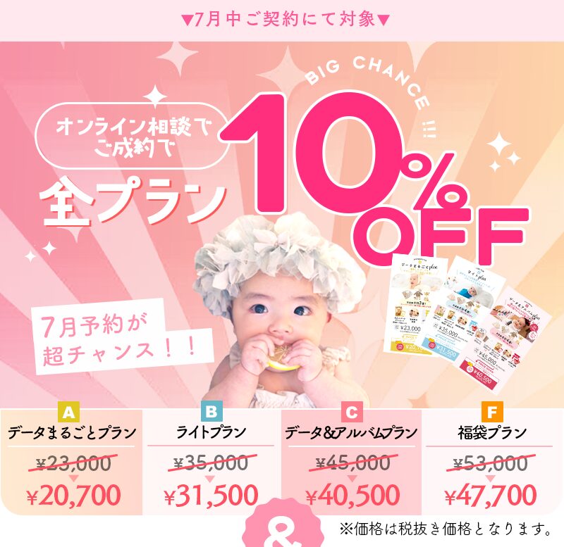 7月キャンペーン【ベビー撮影記念】7月3日(水)〜7月9日(日)ご予約あき情報!写真工房ぱれっと函館店