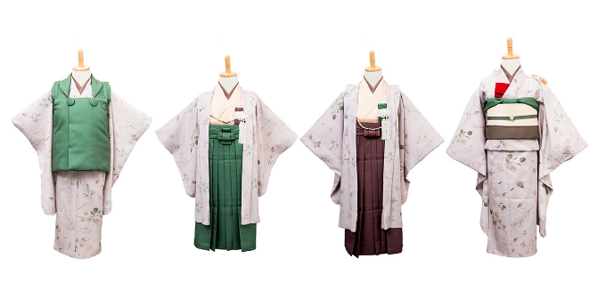 お色違いのグリーンとブラウンの袴が選べとってもおしゃれ!!