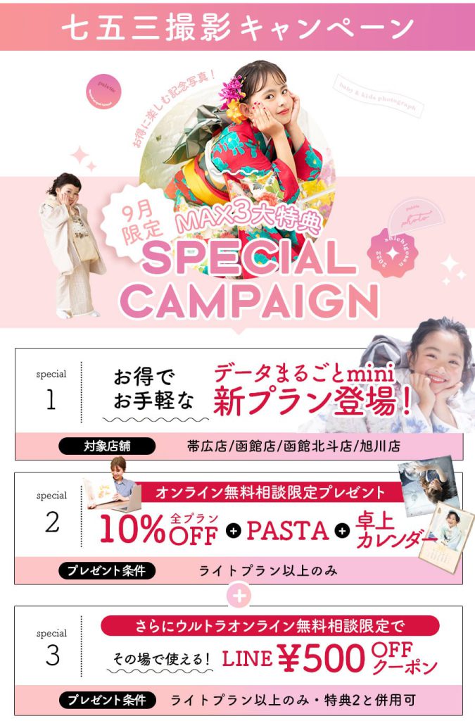 七五三プラン料金や衣装、背景、お店の雰囲気など