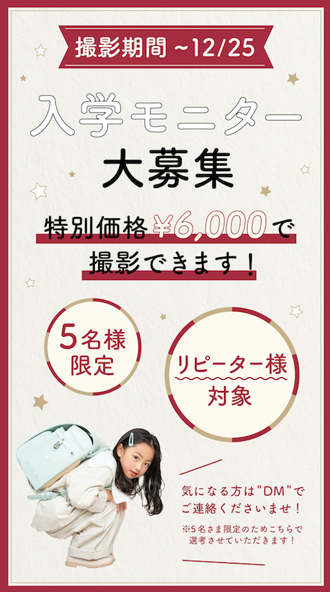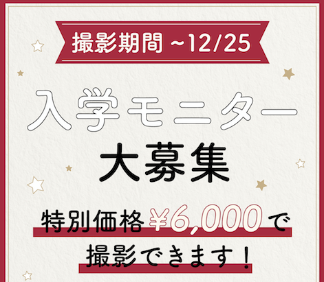 税抜6,000円で撮影できる!入学特別モニター募集!