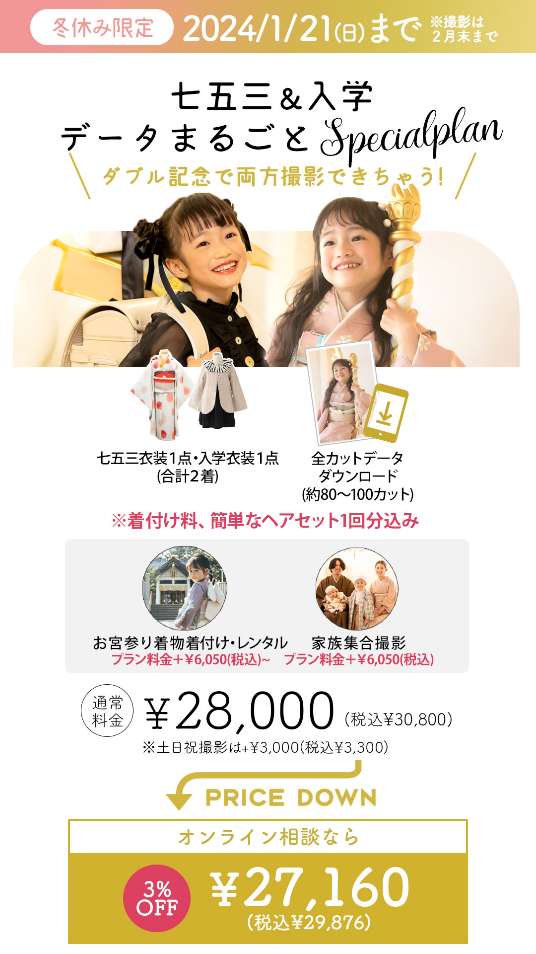 当店で1番人気の福袋プランの内容で七五三と入学撮影ができてしまう欲張りプランが登場!!