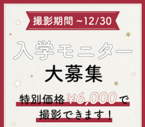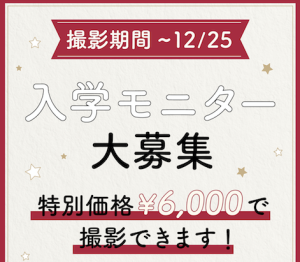 入学撮影どこで撮ろうか迷っている方に朗報です!! なんと!!5名様限定でモニター価格 なんと75%オフの6000円で撮影ができちゃうんです!! モニター募集について、詳しくご紹介しちゃいます!
