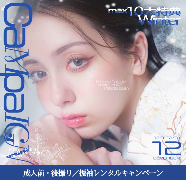 北海道の成人式・卒業式レンタル&前撮りスタジオの写真工房ぱれっとです。1月限定キャンペーン情報を大公開!ぜひこの機会にご予約、ご来店ください!
