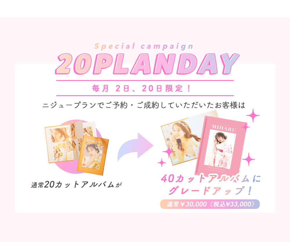 「Nijuプラン」は写真のレタッチによる美肌補正を行いこだわり新成人様の夢を叶えるプランです♡