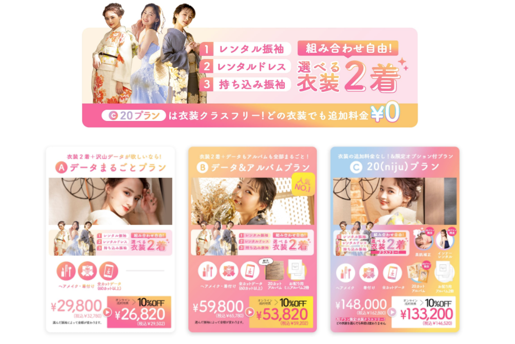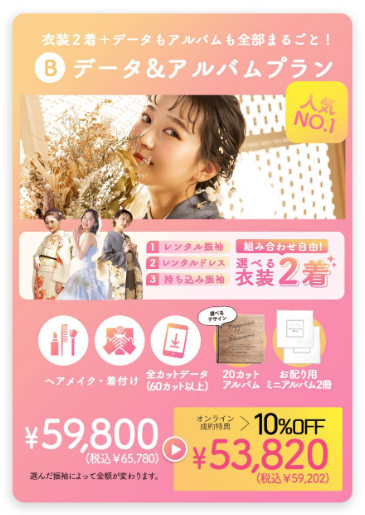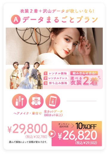 前撮り・後撮りのプランなら、オンライン相談でご成約の方は今だけ10%OFF!