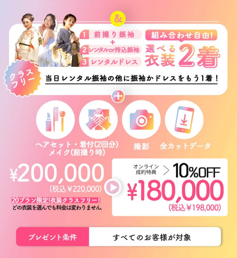 振袖レンタルのプランなら、オンライン相談でご成約の方は今だけ10%OFF!!