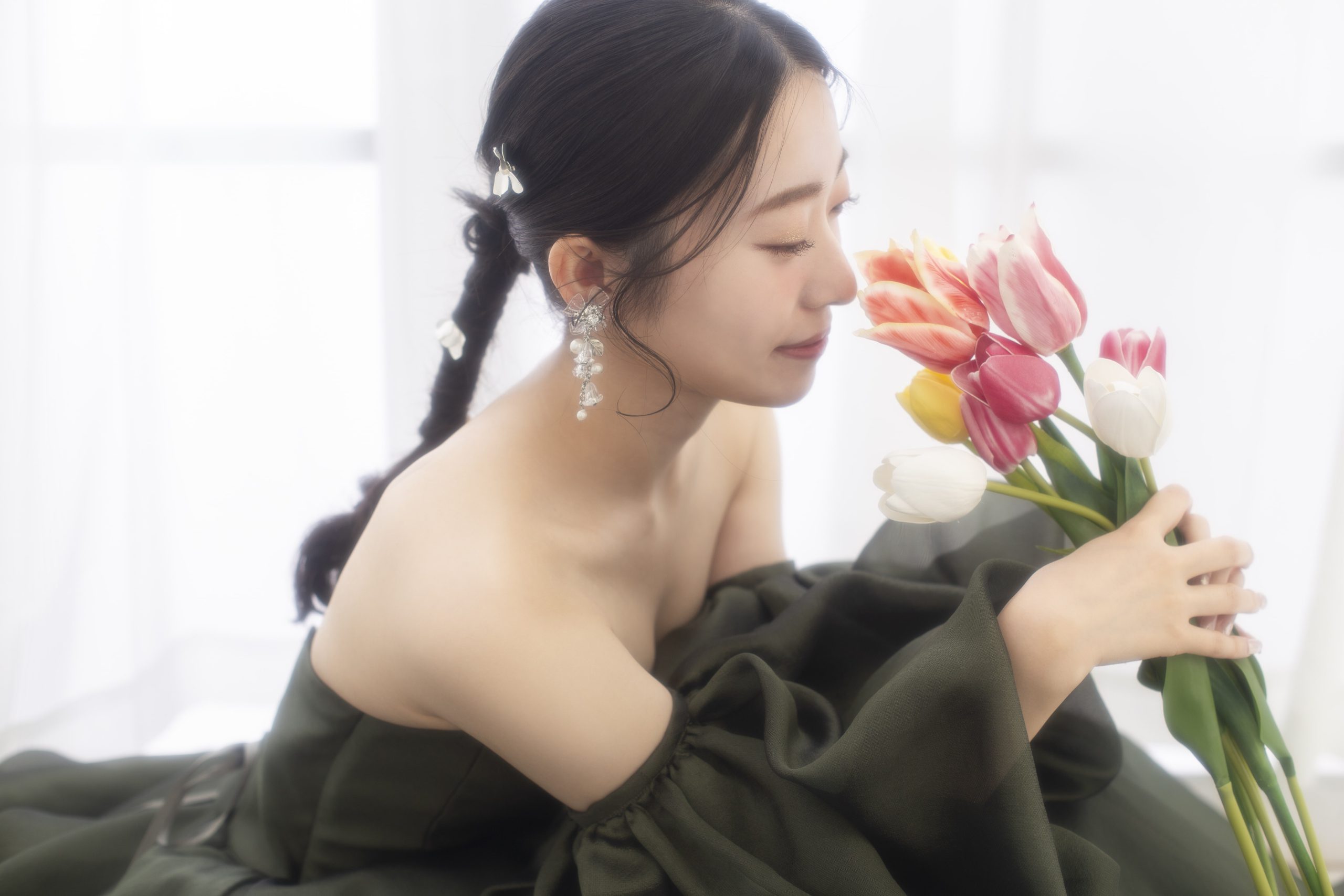 チューリップのお花をアクセントに大人っぽくなりすぎず可愛らしさを出しました♡