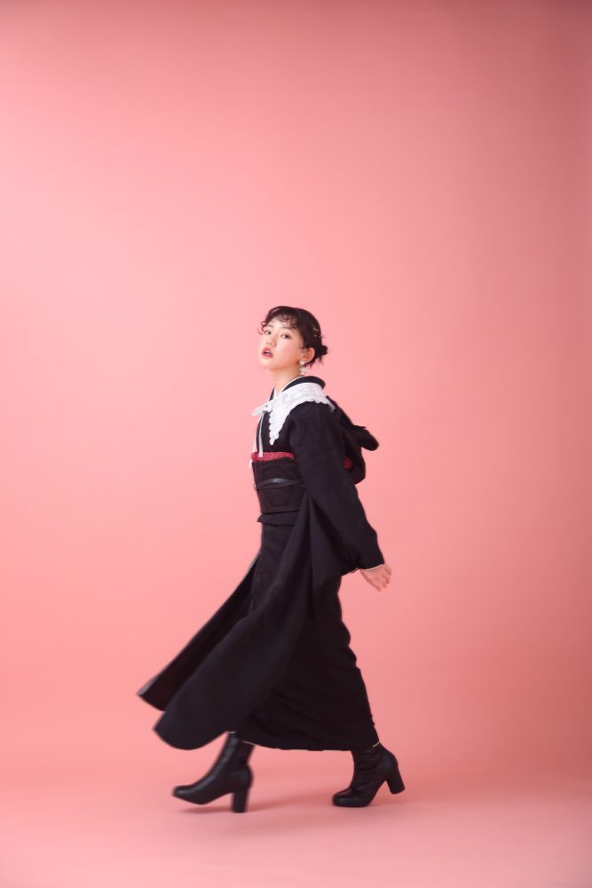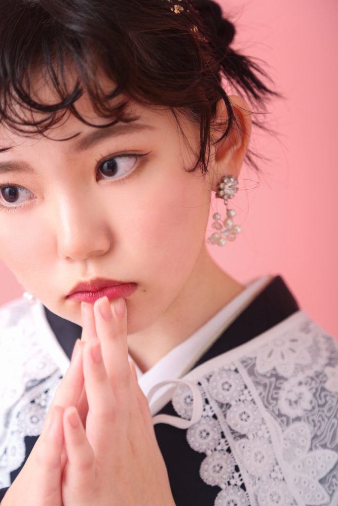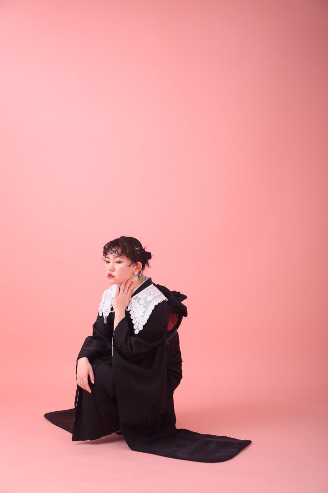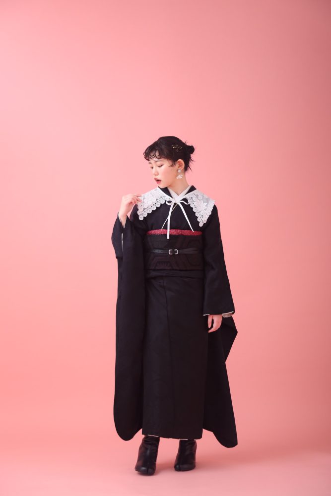 ○レースの付け襟や、ボルドーの帯揚げで女の子の遊び心もプラスで”ガーリーカワイイ”🎀