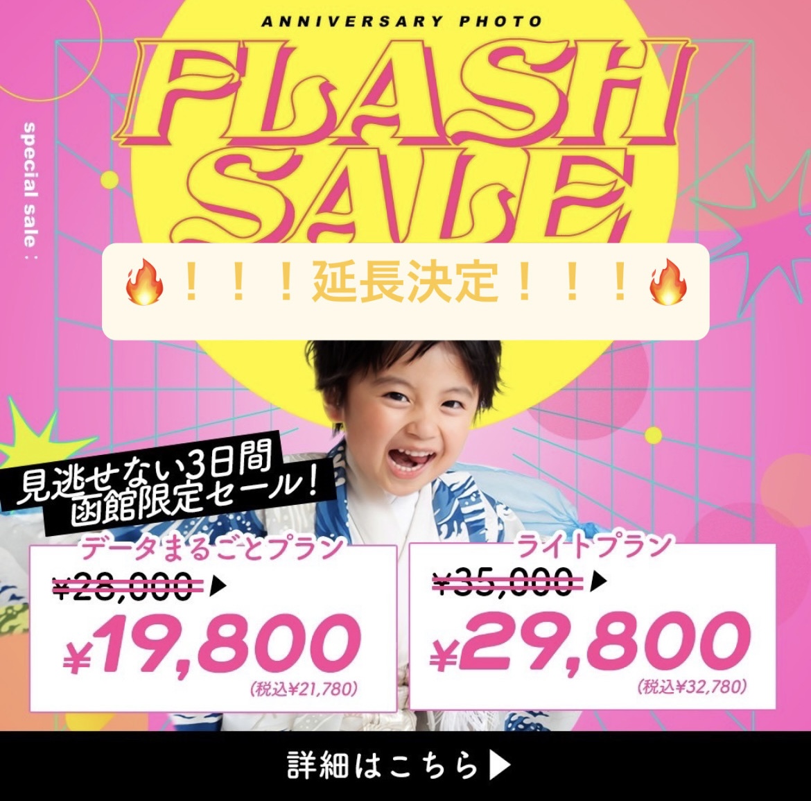 皆さまこんにちは! 北海道函館市にあります写真工房ぱれっと函館店です! 今日から3日間限定セール開催!! 皆様に大好評いただきましたFlash SALE待望の限定プラン!! 今がチャンスです!! ご連絡お待ちしております❤︎