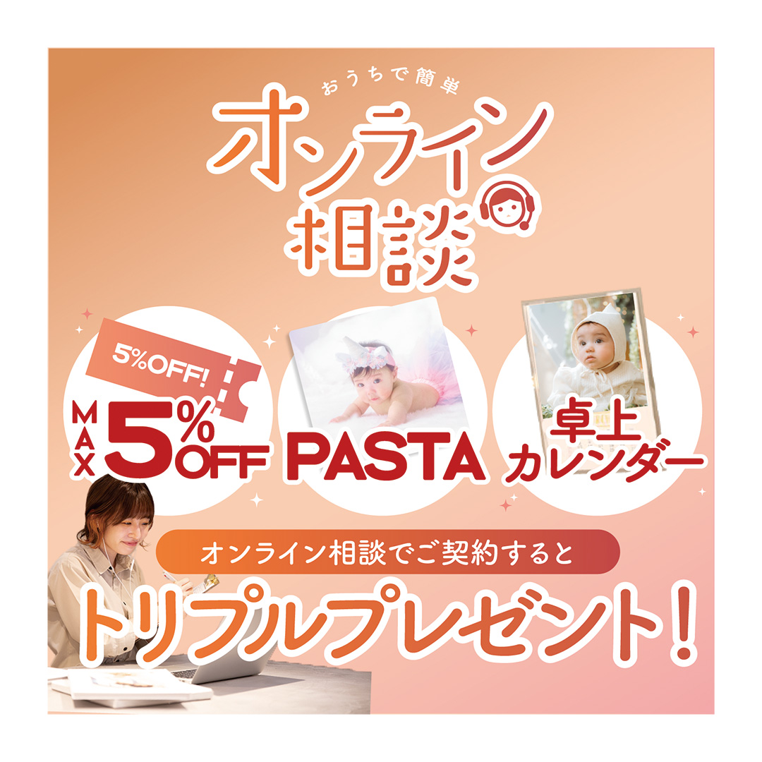 撮影予約はホームページ・オンライン相談・お電話で承っております。