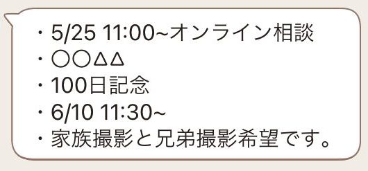 ・ご撮影の希望日もしくはご予約されたご撮影日