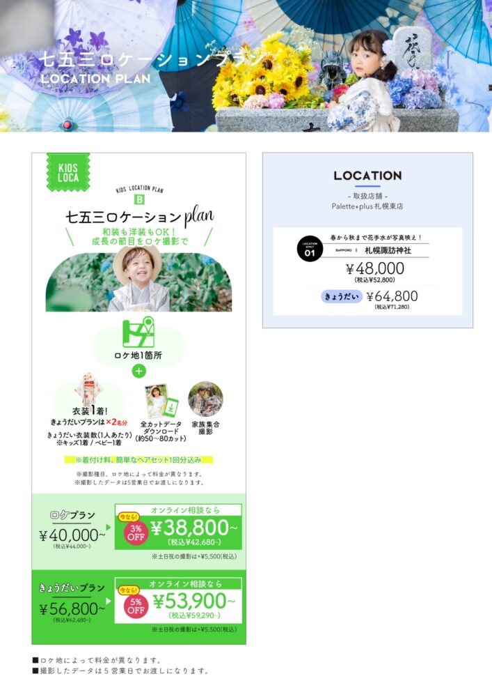 ・キッズ(七五三)→¥52,800(平日)税込、土日祝は+¥5,500(税込)