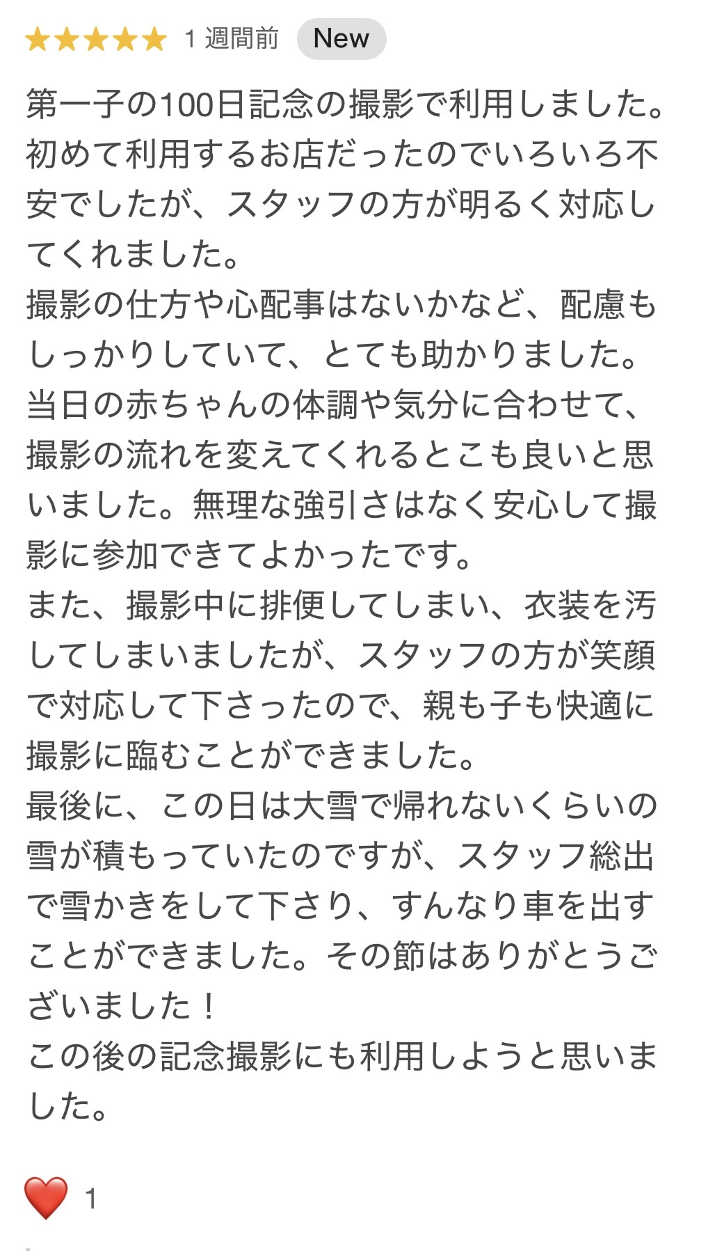 Palette+plus 札幌東店(写真工房ぱれっと)の口コミで、衣装と同じくらい絶賛されているのがスタッフさんの対応力です 。