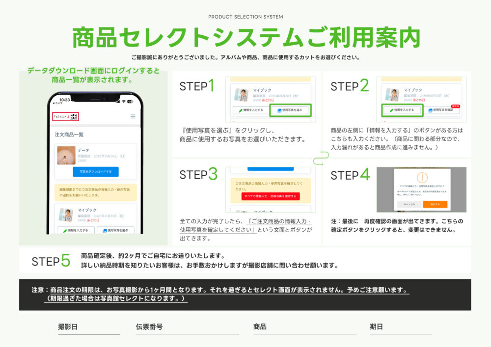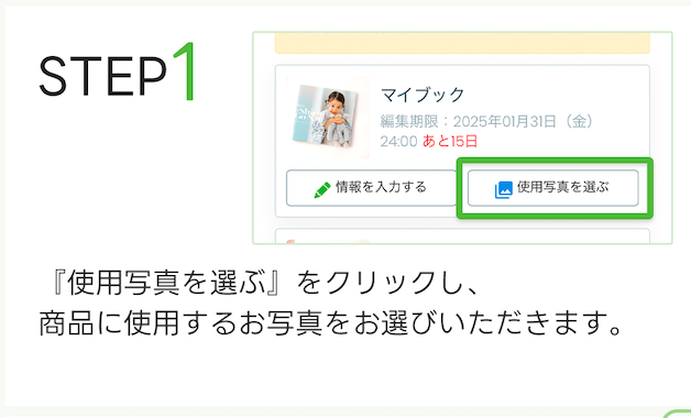 お写真選びには、商品の制作スケジュールを確保するために「期限」を設けさせていただいております。