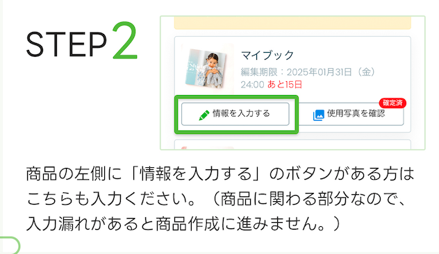 写真を選んだら、画面内の「情報を入力する」という項目に進みます。