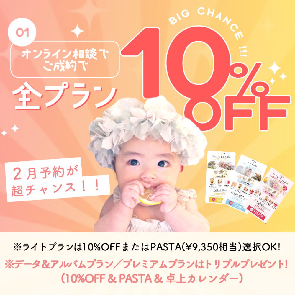 2024/02/23【2/22~緊急キャンペーン開始!】事前オンラインカウンセリングで百日撮影が更にお得に・:*