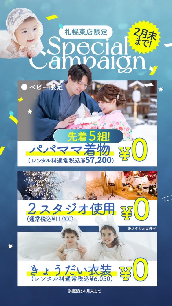 ※1歳記念4着撮影は、札幌東店は対象外となります。