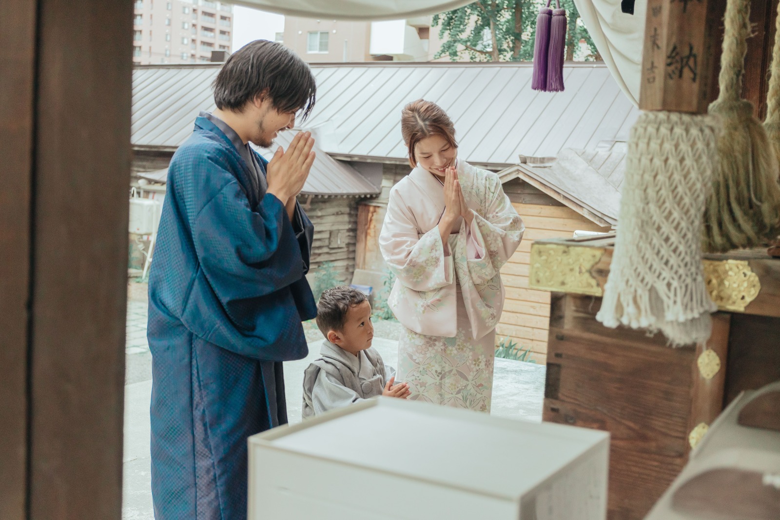 日本ならではの美しい着物で揃えた写真は、家族の絆の深まりも感じる華やかな一枚に。