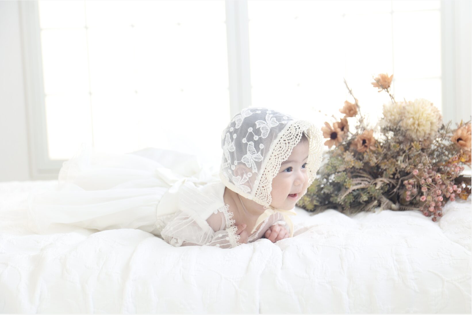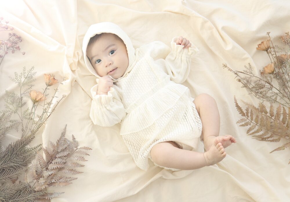 お衣装はご来店いただいてからお選びいただく際、じっくり選びたい!という気持ちもあるかと思いますが、赤ちゃんご機嫌な表情を残せるのはほんの一瞬だったりもします…