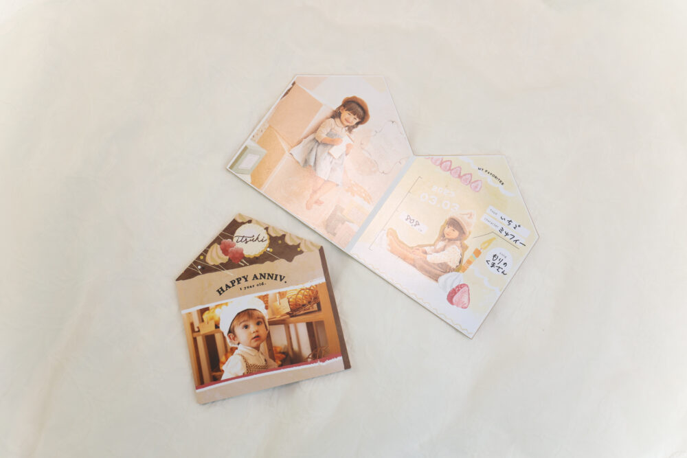 撮影後には、大切な思い出を形に残すアルバムやフォトブックの作成もお手伝いします。ぜひ一度、当スタジオで家族の大切な瞬間を残しましょう!