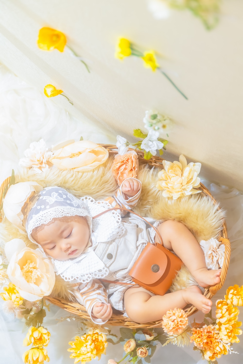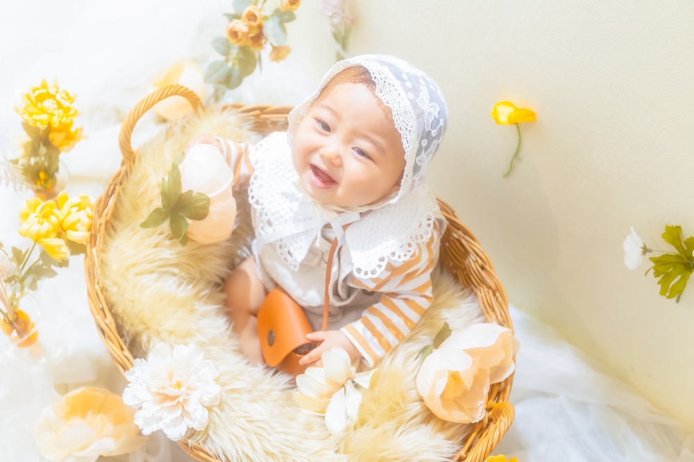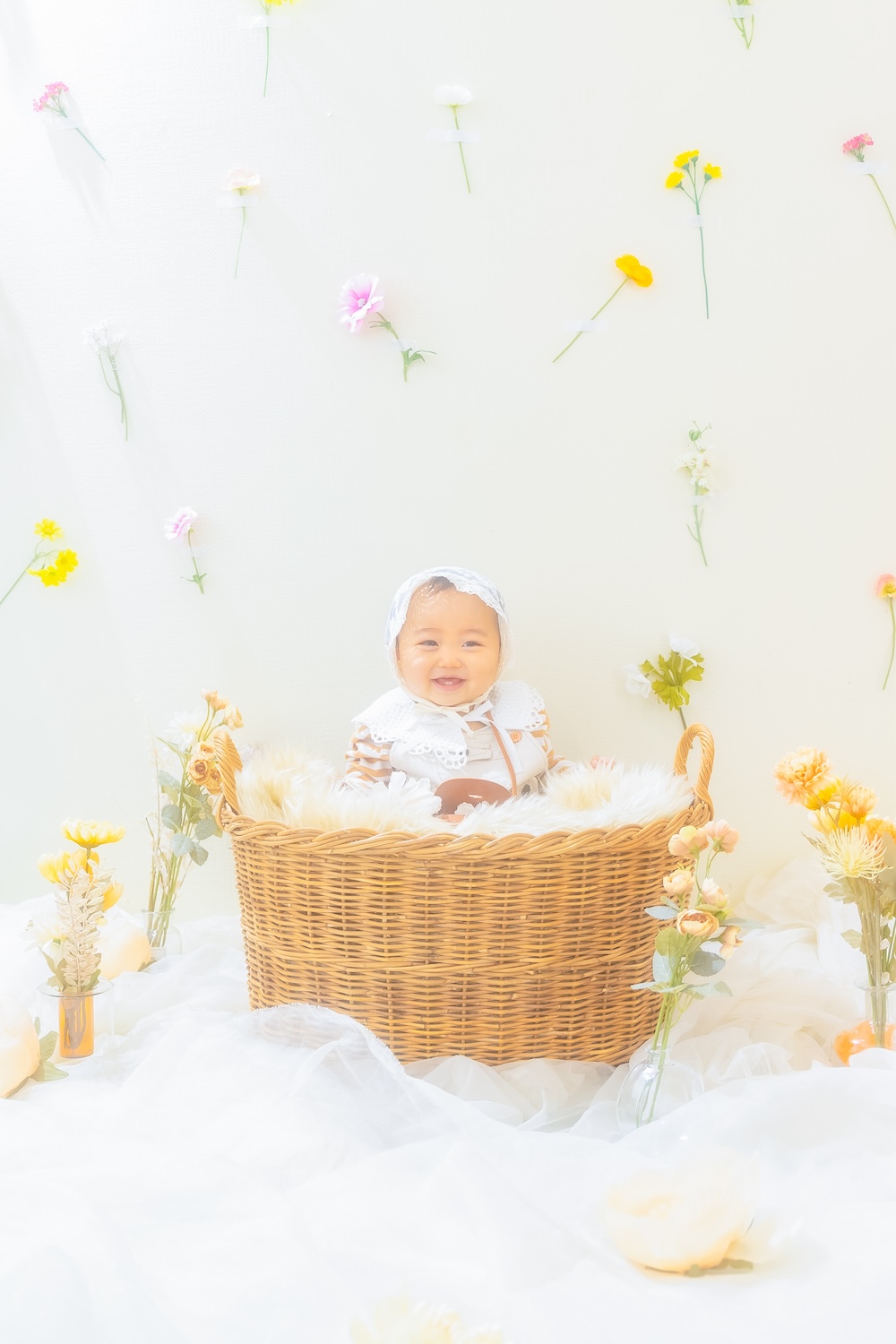 北海道札幌市東区にあるベビーキッズフォトスタジオ、palette+Plus札幌東店です。 東店よりベビーの新ビジュアルが登場いたしました。 ポカポカな春の日が差し込むようなビジュアル【Cheerful baby】が新登場! 春のお花に囲まれてすやすやお昼寝でもいかが? 1記念はもちろん、ハーフバースデー、お誕生日記念にもってこい!