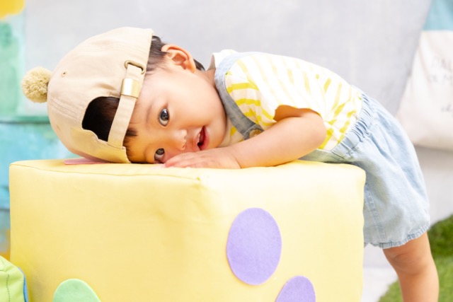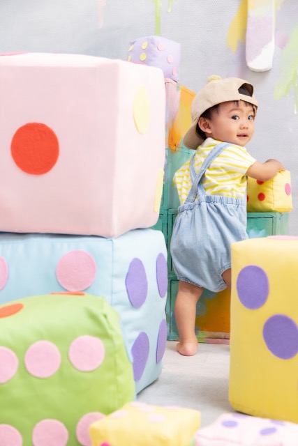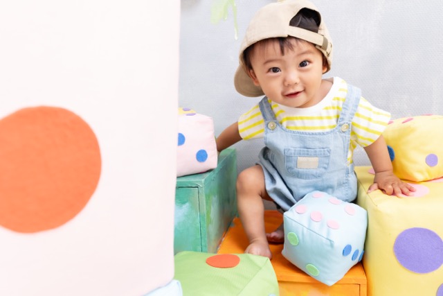 東店よりベビーの新ビジュアルが登場いたしました。 かわいく元気なビジュアル【カラフルダイス】が新登場! カラフルで元気に遊べるビジュアルです♪ 1記念はもちろん、ハーフバースデー、お誕生日記念にもってこい!