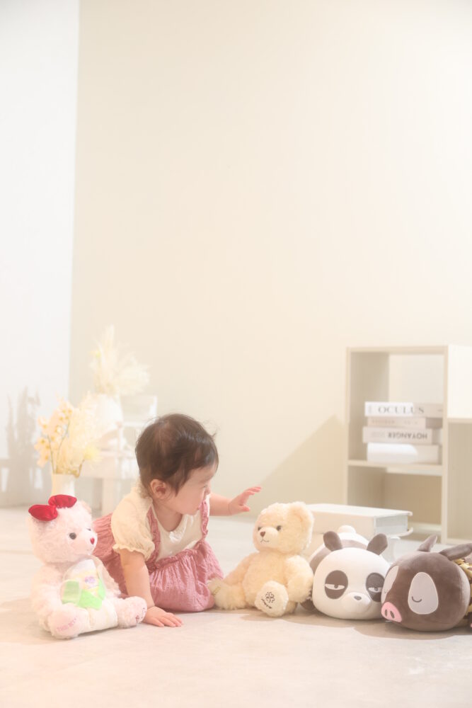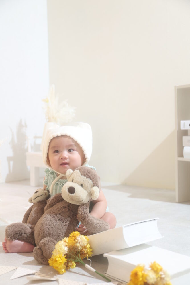 新生児から一緒!大事な思い出の詰まったぬいぐるみと一緒に撮影📸