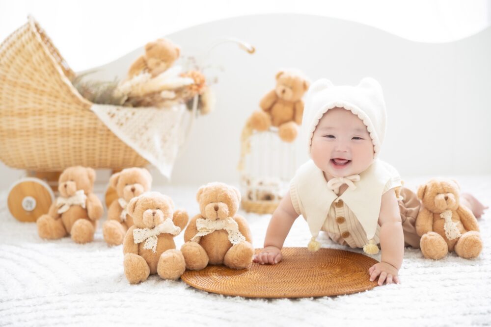 みなさんこんにちは☀︎ 北海道札幌市東区にある、ベビーキッズ専門フォトスタジオpalette+Plus札幌東店です。 東店から新ビジュアル公開のお知らせです♪ 小さなくまさんに囲まれた可愛いがたくさん詰まったビジュアルです♡