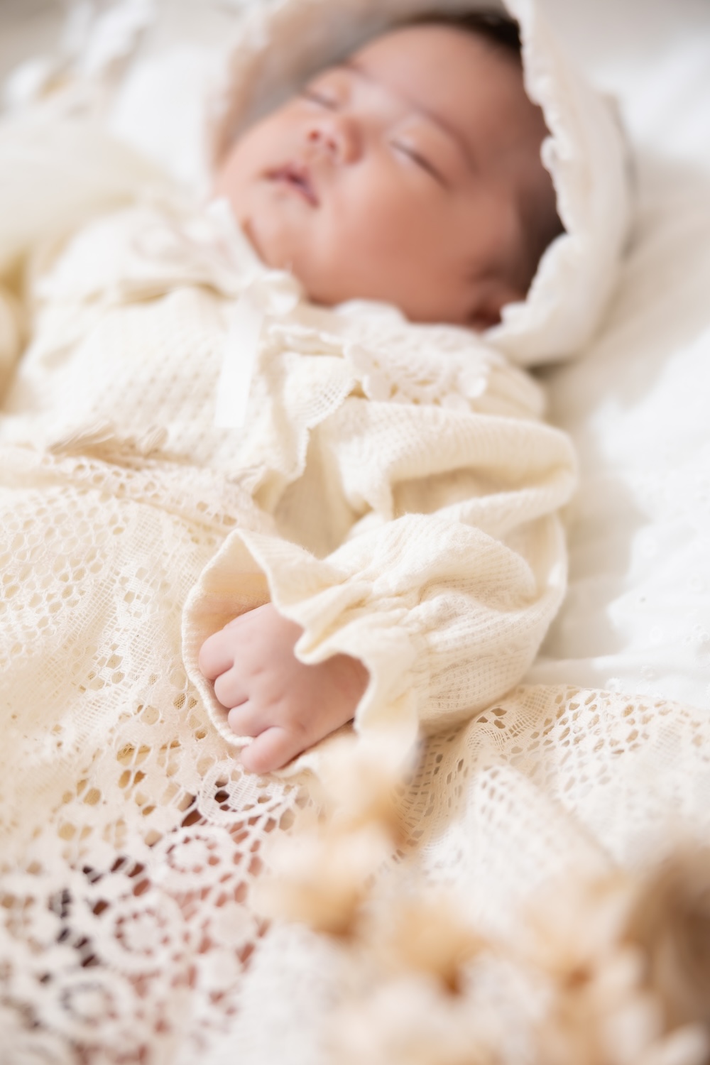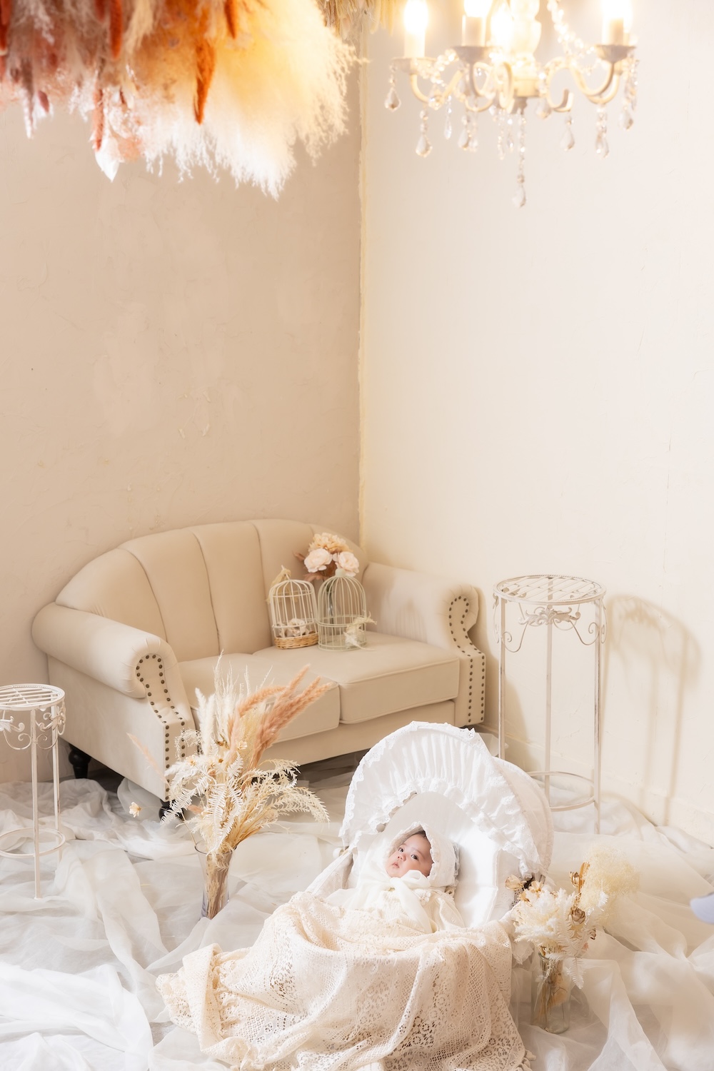 オフホワイトのお衣装を身にまといおしゃれなベビーフォト!