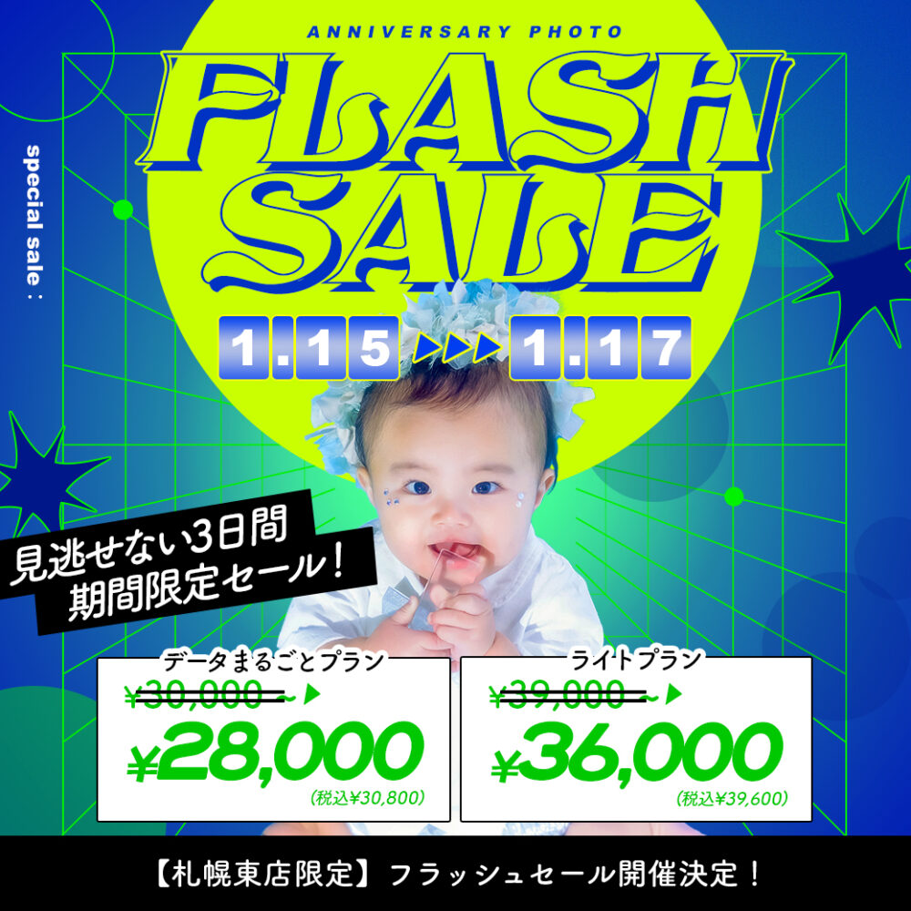 2026/01/13電撃プライス!”フラッシュセール”開催【1/15〜1/17】 / ベビーキッズ全種目記念撮影対象!【Palette+plus札幌東店】