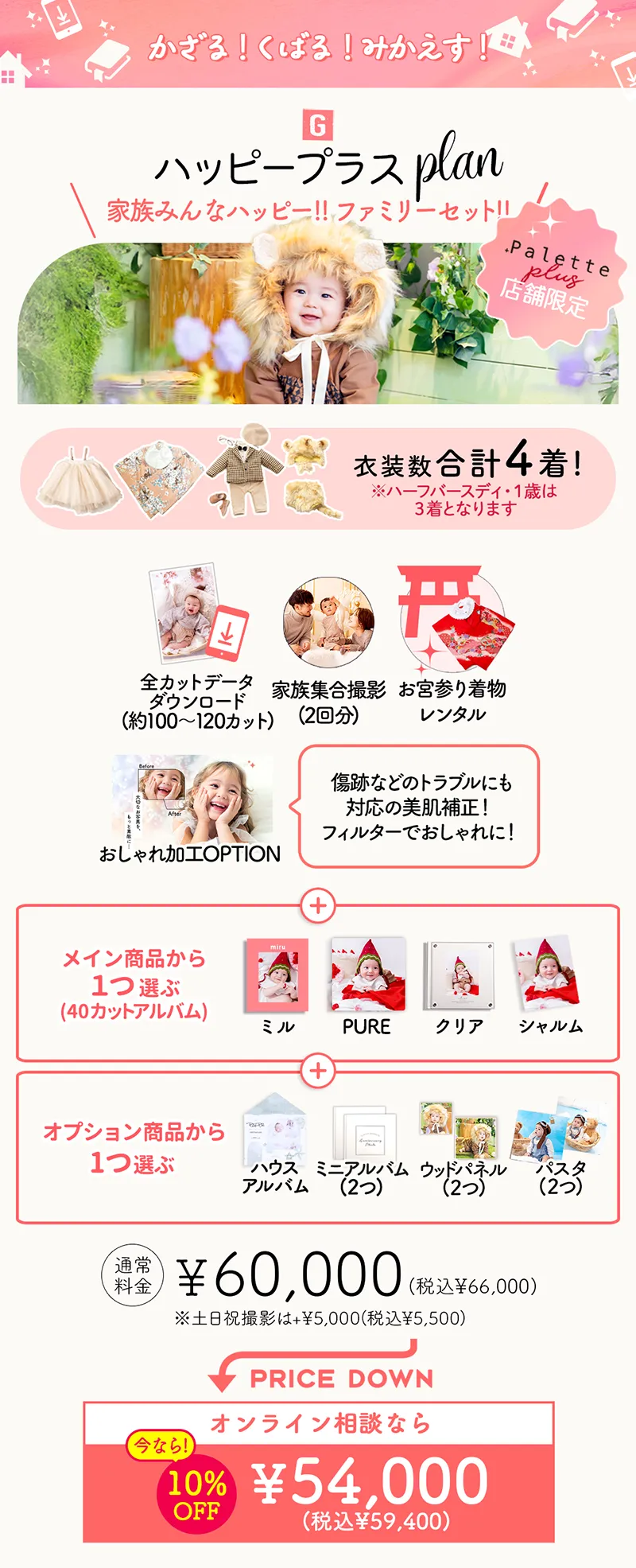 さらに、お得に撮影するなら「福袋プラン」や「ハッピープラスプラン」といったセットプランが人気です 。