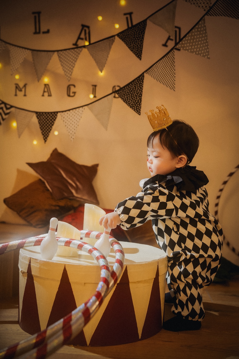皆様こんにちは! 北海道札幌市東区にあるベビーキッズフォトスタジオ、palette+Plus札幌東店です。 LALALAスタジオを活かしたPremier Babyの新ビジュアルが登場! サーカスの本番ではなく“練習の時間”をテーマに、赤ちゃんの成長と小さな挑戦を重ねて表現しました。