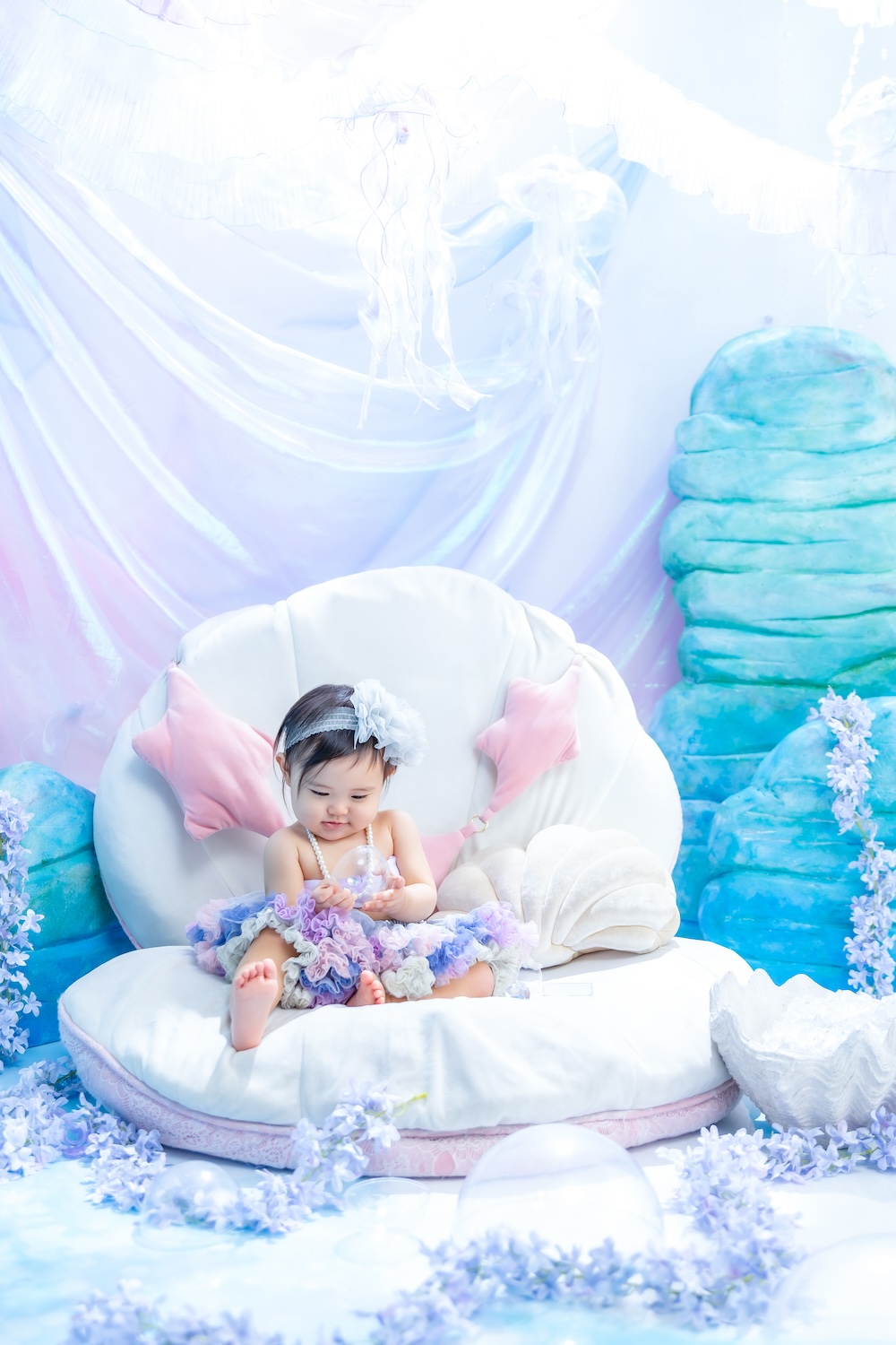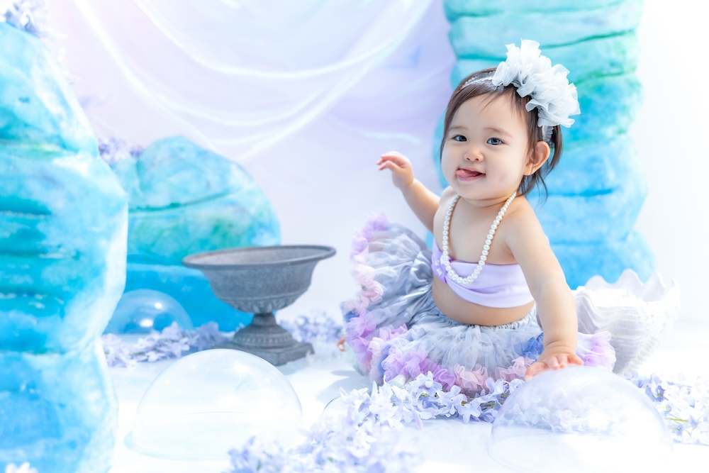皆様こんにちは! 北海道札幌市東区にあるベビーキッズフォトスタジオ、palette+Plus札幌東店です。 やわらかな光が差し込む、幻想的な海の世界。 まるで物語の中に迷い込んだような、新しいビジュアル「マーメイドベビー」が誕生しました。