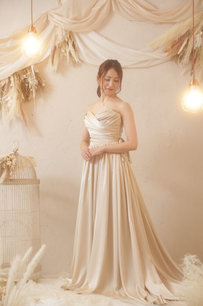 こちらも絶妙な艶感のあるドレスがお肌を綺麗に見せてくれます!