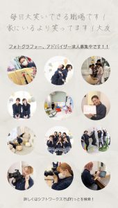 三景スタジオグループでは現在一緒に働くスタジオスタッフを募集中です。