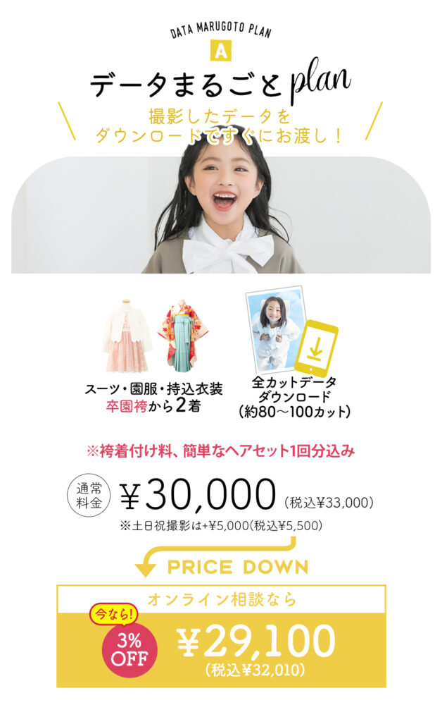 そうなるとコストも時間もかかってくる…そんな方にピッタリなこちらの【入学&七五三プラン】